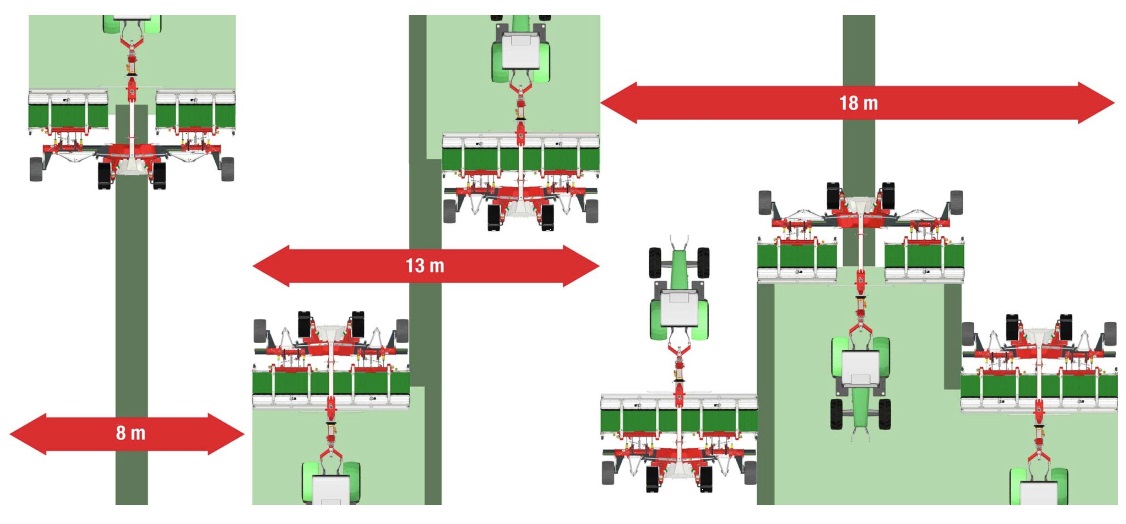 Reiter complète sa gamme d’andaineurs à tapis avec le R8 Compact. En configuration andain au centre, il ramasse sur 8 m de large. En déversement sur le côté, il prend 6 m. Par rapport au semi-porté R9 Profi déjà connu, il ramasse un peu moins large mais gagne 30% de poids. L’appareil affiche en effet 4,3 t, à répartir sur le timon et quatre roues larges pour préserver la prairie.