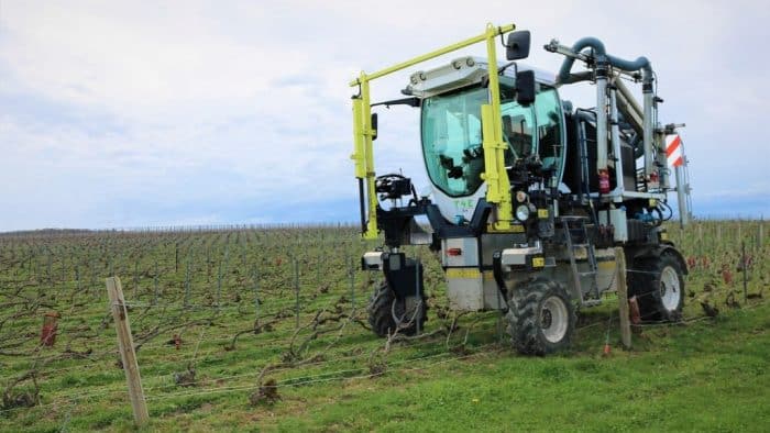 Le groupe Vranken-Pommery a acheté un tracteur enjambeur électrique Kremer T4E en 2016. Produit par le constructeur champenois Kremer Energies, il est doté de batteries lithium-ion offrant une capacité totale de 94 kW.