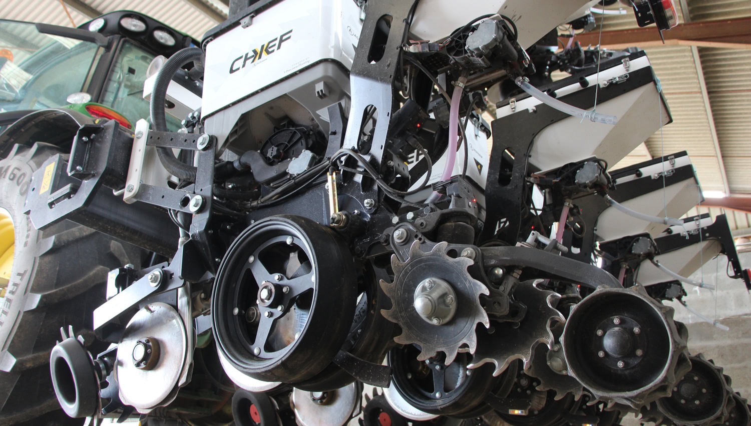 La distribution électrique du semoir Chief autorise la coupure de rang par GPS, mise en œuvre en 2024, et la modulation de densité, pas encore testée. Ce sera sans doute la prochaine étape pour cette cuma, une fois les fonctions de base du semoir maîtrisées.