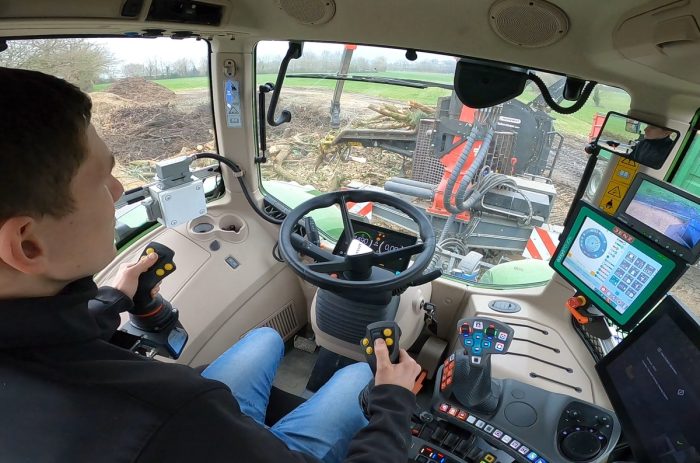 Une partie des raffinements technologiques du gros Fendt reste en sommeil. Pas besoin d’autoguidage ni de séquences de bout de champ pour déchiqueter du bois. Les bras de relevage ont pour leur part été démontés pour libérer de l’espace à l’arrière. Mais tout cela demeure bien entendu utile pour la valeur de revente du tracteur. Dans ce genre de chantiers, répartis sur deux départements et même au-delà, il faut prévoir des déplacements nombreux. Le Fendt a pour cela d’autres qualités appréciables : confort, maniabilité, capacité de freinage.