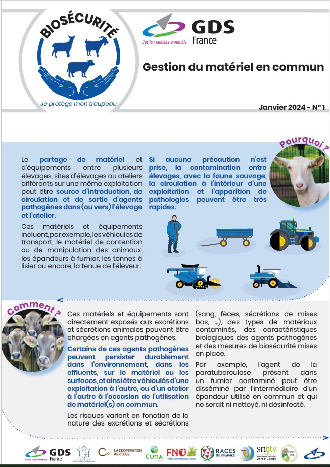 GDS France a publié une note sur la bonne gestion du matériel en commun au regard de la biosécurité. « Si aucune précaution n’est prise, la contamination entre élevages, avec la faune sauvage, la circulation à l’intérieur d’une exploitation et l’apparition de pathologies peuvent être très rapides. » D’ailleurs, le risque existe dans les cuma mais pas seulement. Il se manifeste également entre différents ateliers d’une même exploitation, ou avec les intervenants extérieurs comme les pareurs ou les transporteurs.