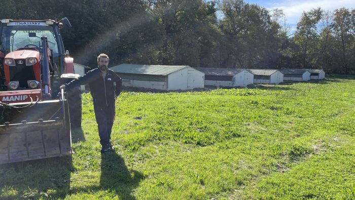 L’exploitation familiale reposait sur une quarantaine d’hectares et un atelier volailles plein air label rouge. Pour assurer la continuité et sauver une partie des terres menacées de vente, il a dû acquérir 14 hectares qui étaient en fermage. Conscient que la surface ne permettait pas d’investir massivement en matériel, il a fait le choix de concentrer ses efforts financiers sur la volaille. Il construit ainsi deux bâtiments complémentaires de 400 m² afin de développer la production.