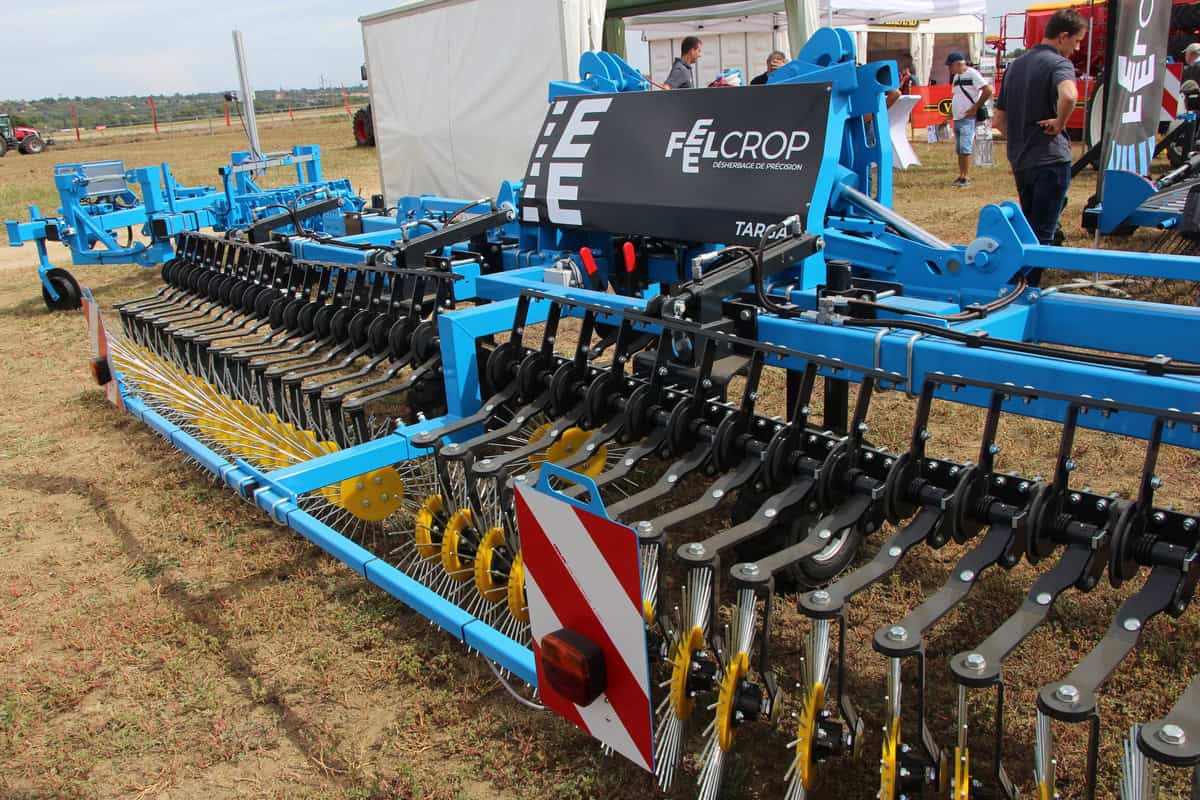 Autre nouvel acteur dans le désherbage, Ermas était jusque-là connu pour ses accessoires de jumelage. Il le fait sous la marque Feelcrop, avec deux gammes d’outils. D’une part les roto-étrilles Targa. Largeur de 6 et 12m, sections indépendantes de 1,50m, pression au sol réglable de puis le tracteur. D’autre part les herses étrille Sigma. Largeur de 6, 9 et 12m, dents de 7mm au pas de 2,5cm (6 rangées), réglage hydraulique de la pression.