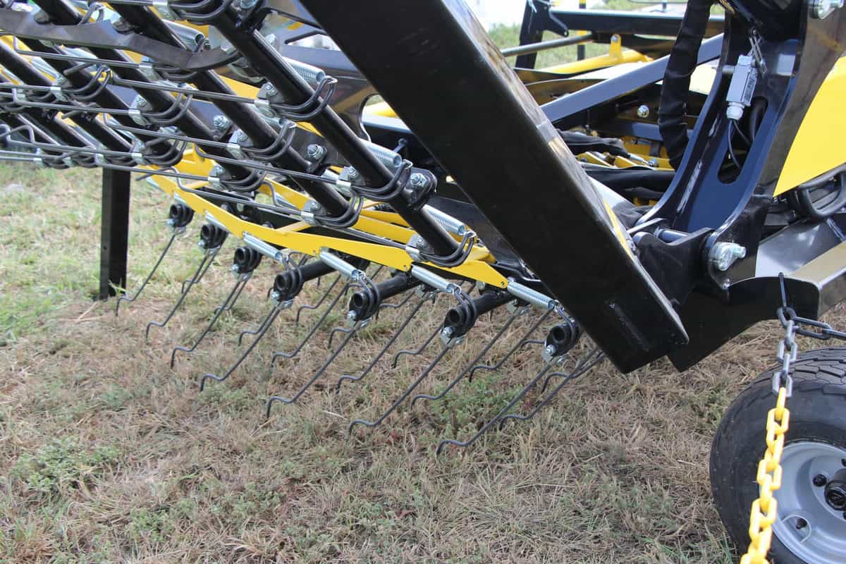 Phenix Agrosystem dispose de sa propre herse étrille avec l’Arcadia. Cette machine dispose de deux réglages indépendants, l’angle des dents et la pression au sol. D’autre part, chaque compartiment de 1,20m peut se relever, avec effacement total des dents. Cette manœuvre peut se piloter automatiquement par GPS, la machine étant compatible Isobus. Le premier modèle travaille sur 12m de large. Il possède 420 dents de 7mm, réparties sur 7 rangées, soit une tous les 2,8cm. Des roues placées à l’avant assurent le suivi du sol.