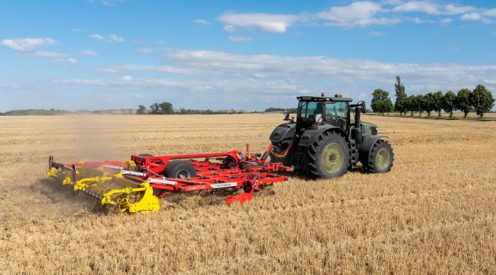 Le déchaumeur Plano Pöttinger reçoit une herse peigne lourde pour une utilisation sans rouleau