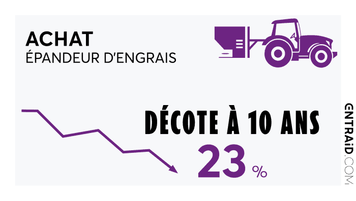 Au bout de 2 ans d’utilisation, un épandeur d’engrais acheté neuf aura ainsi perdu 26 % de sa valeur d’achat.