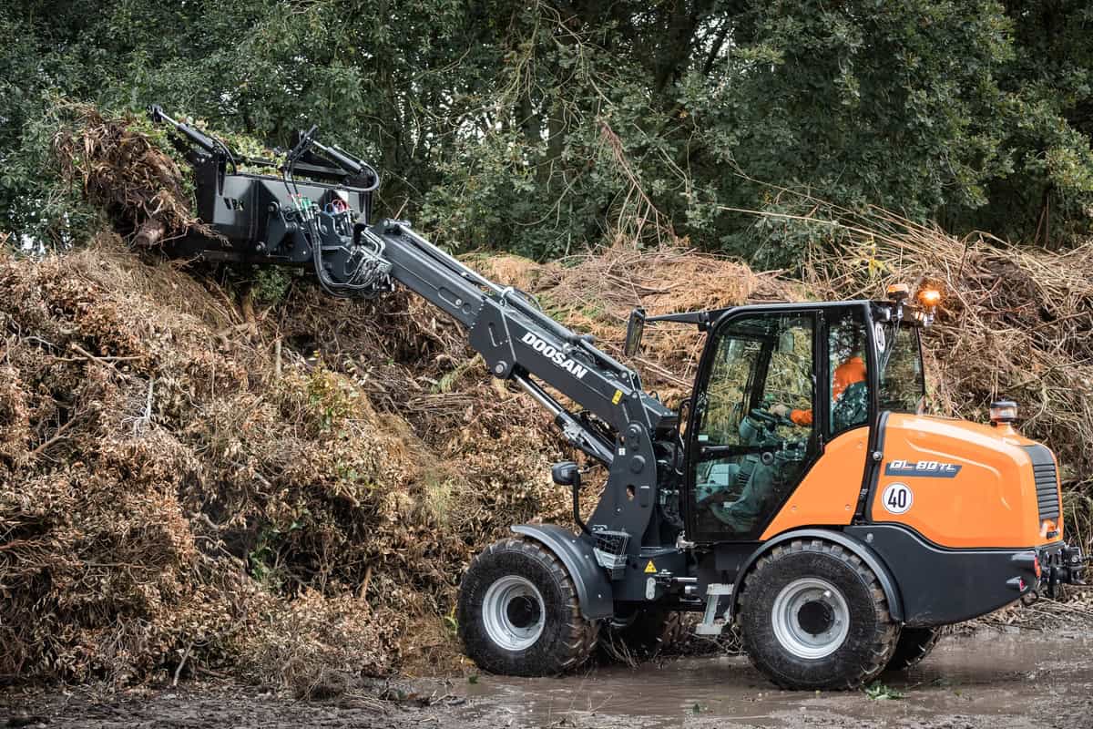 Doosan joue dans la catégorie au-dessus avec ses chargeurs articulés DL60 et DL80, à moteur de 66 ou 75ch. Ces engins, construits par Tobroco-Giant, reçoivent une transmission hydrostatique à blocage de différentiel. D’autre part, la gamme offre trois types de bras: cinématique en Z et P, ou télescopique. Poids à vide entre 3,75 et 5,2t.