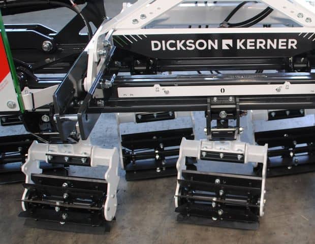 Equipé uniquement de rouleaux, ce châssis peut travailler en plein ou seulement en localisé. Dans ce cas, il peut par exemple contrôler un couvert de légumineuses dans une culture de céréales. L’orientation des rouleaux permet alors d’ajuster leur effet sur la végétation. Les bineuses Dickson-Kerner peuvent être équipées d’une caméra (Tillett & Hague) avec une interface de guidage. Elles sont distribuées en France par AgroSoil.