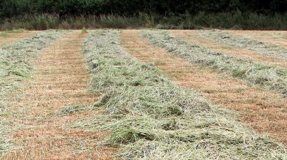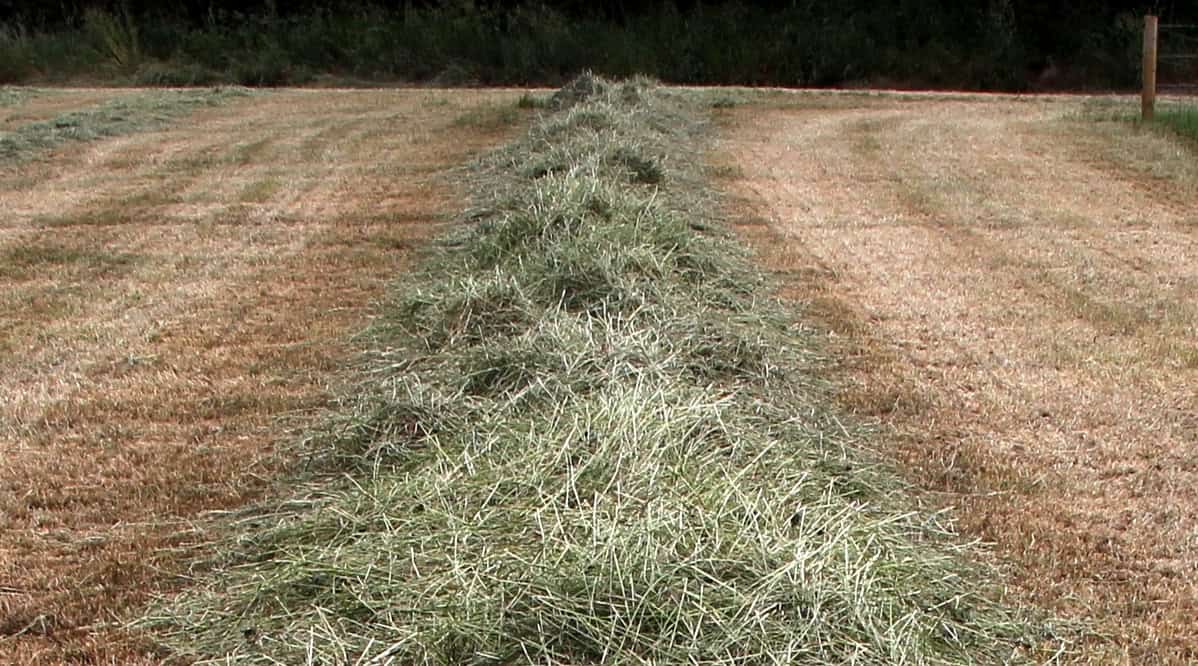 Option2: fauche conditionnée en andains étroits, puis regroupement 6 à 24h avant l’ensilage. Soit là aussi trois passages. Point fort: l’homogénéité du séchage.