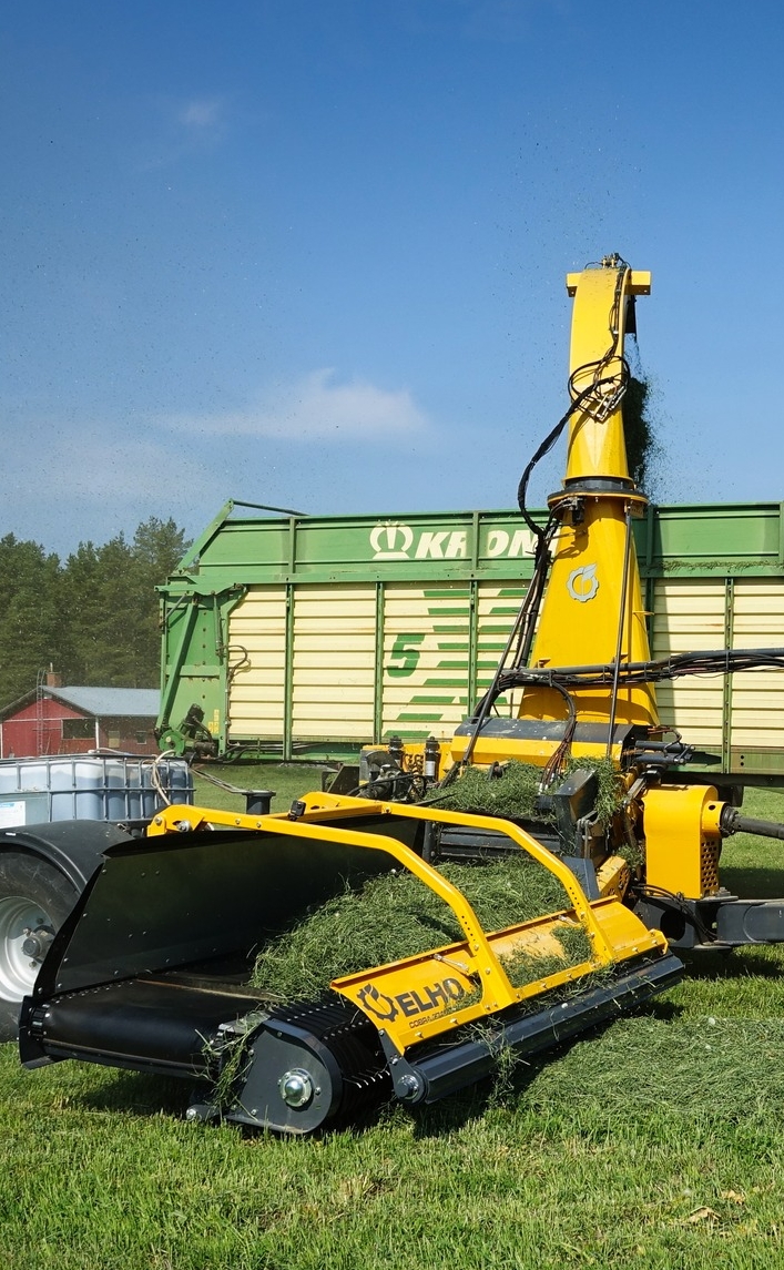 Elho développe le principe de l’ensileuse traînée en alternative économique à l’automotrice pour la récolte de l’herbe. Le constructeur finlandais propose ainsi le modèle Cobra 7710 T, qui demande un tracteur d’au moins 250 ch et accepte jusqu’à 400 ch.