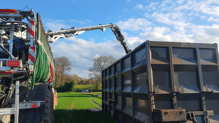 L’association d’un compresseur à lobes et d’une turbine assure par ailleurs un bon transfert du lisier de la tonne à la rampe, tout en améliorant le remplissage : « la tonne se charge en seulement deux minutes trente. Le grand bras de pompage de 11 mètres à trois articulations facilite le transfert avec les tonnes ravitailleuses et permet de vider les fosses les plus profondes. »