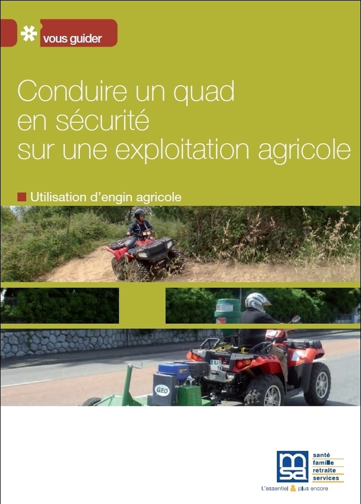 C’est pourquoi la mutualité sociale recommande l’usage de protections corporelles : chaussures montantes et gants, casque homologué avec visière ou lunette, vêtements couvrant entièrement le corps et les membres. Notons à ce propos que la loi impose un casque pour les quads réceptionnés en catégorie L, mais pas pour ceux réceptionnés en MAGA ou en tracteur. Elle oblige aussi le conducteur à porter des gants homologués (normés et marquage CE).
