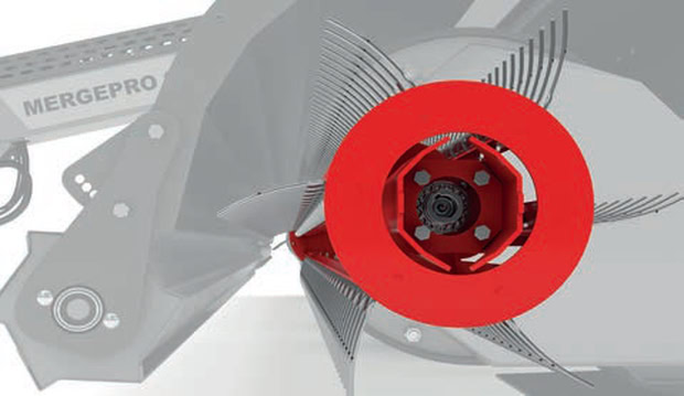 Les matériels de récolte canadiens Anderson ne sont pas tout à fait nouveaux en France. Mais c’est désormais Jeulin qui en assure l’importation, avec notamment un tout nouvel andaineur à tapis. Il s’agit du MergePro. Son pick-up sans cames dispose de 6 rangées de dents à profil fuyant. Particularité : son régime de rotation est asservi à la vitesse d’avancement. Le flux de fourrage s’en trouve régulé, grâce également aux déflecteurs incurvés présents au-dessus du pick-up et au fond du tapis.
