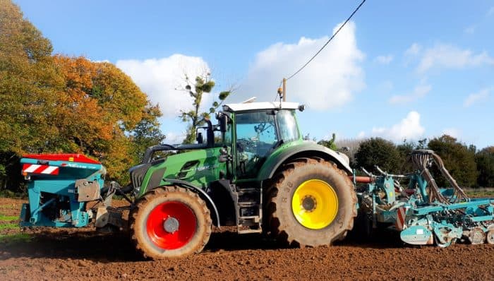 «La saison 2019 remet les pendules à l’heure», comme l’exprime Vincent Guérin, salarié à la cuma Agribocage (Ille-et-Vilaine). On avait oublié que l’automne peut être très humide.» Le groupe s’est équipé avec des outils classiques mais très polyvalents. A la base: un combiné de semis sur herse rotative avec trémie frontale (Sulky). Un petit outil à disques (Kongskilde Front Terra) qui s’attelle à l’avant et permet de réaliser un semis en un passage. «En conditions normales, ça marche très bien, mais là, ça ne passait pas, et le tracteur était trop juste.» Le tracteur a été remplacé par un plus puissant, malheureusement sans le guidage RTK tant apprécié sur le premier. «Avec notre fournisseur, Profil Plus, nous avons regardé ce qu’il était possible de faire sur les pneus. Nous avons pu monter à l’arrière les roues de l’ensileuse, pour moins tasser.» La cuma a donc poursuivi les semis, après labour cette fois, mais tout ne sera pas implanté.