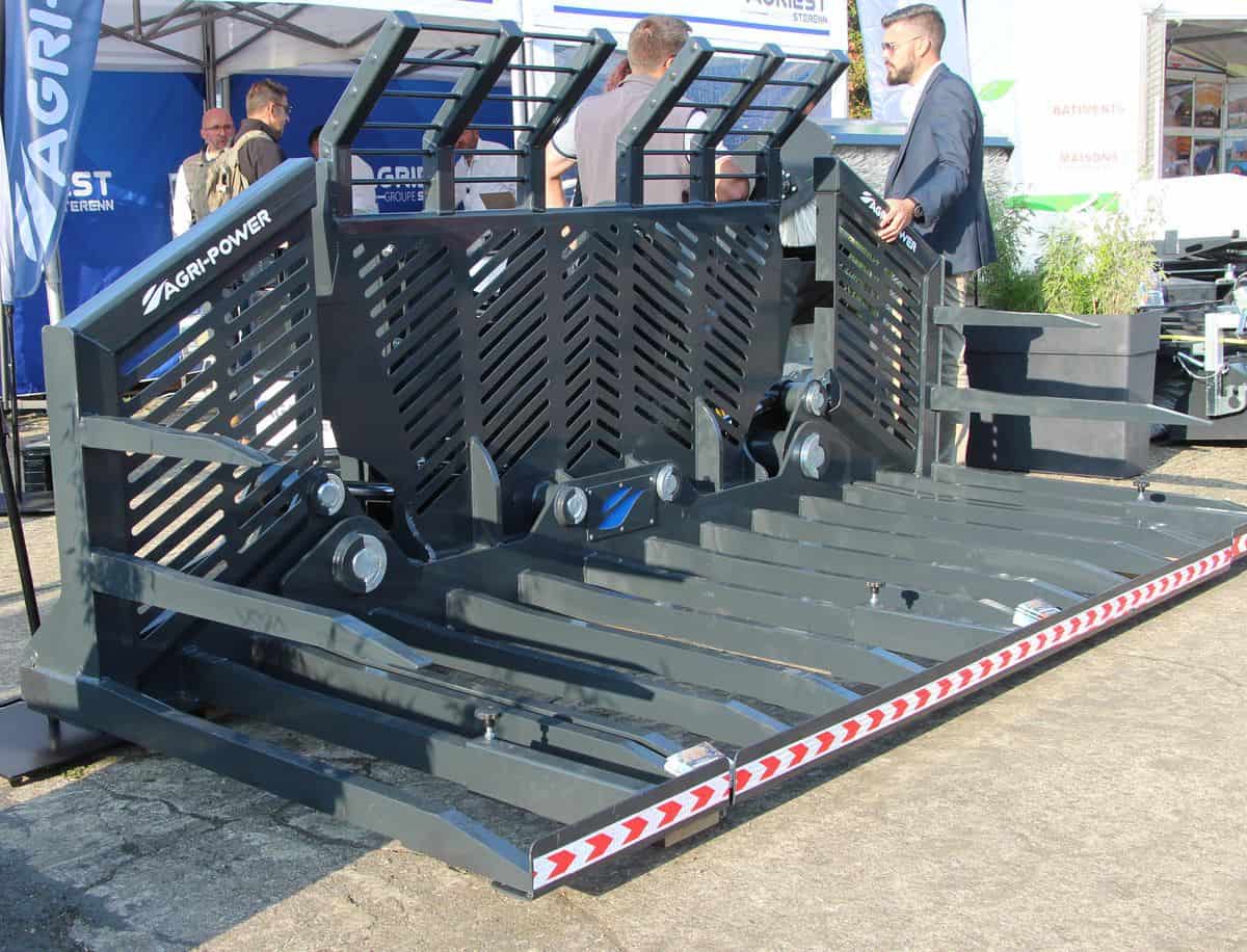 Agriest a dévoilé une fourche à ensilage de grosse capacité, l’Agri-Power 3500 XL. Adaptable à toutes marques de chargeurs, elle possède deux volets latéraux repliables, avec articulation sans entretien. Largeur totale de 3,50 m, 20 dents de 1,25 m en hardox 500, 1,50 m de hauteur total rehausse comprise.