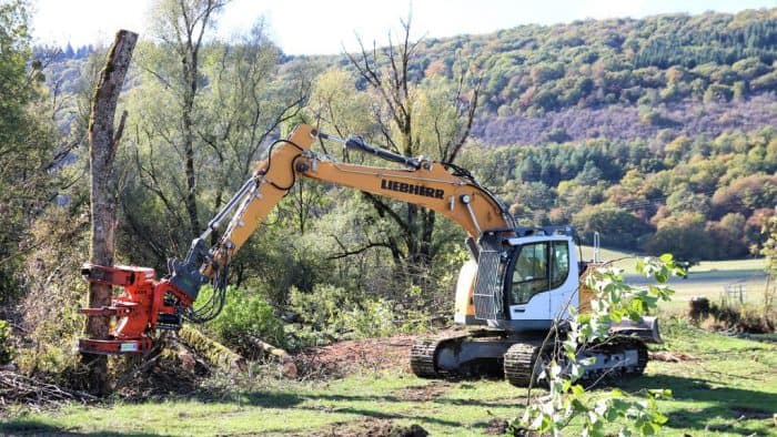 En complément de la théorie, place à la pratique ! Parmi les démonstrations de la journée, la cuma Compost 71 était à la manœuvre pour montrer l’efficacité de sa tête d’abattage.