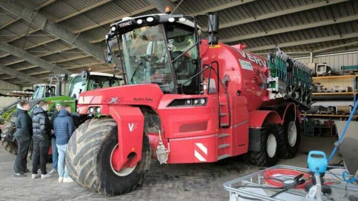 Côté épandage des digestats, les cumistes ont opté pour l’achat d’un automoteur d’épandage. Celui-ci comprend plusieurs citernes permettant d’assurer le ravitaillement au champ. En effet, au vu des gros volumes à épandre (65 000 m3 de digestat en 2025) et de l’éloignement important de certaines parcelles, ce système paraissait être le plus pertinent économiquement par rapport au système traditionnel « tracteur-tonne à lisier ». Deux chauffeurs sont en charge de l’activité d’épandage. Ils se relaient pour assurer un débit de chantier important (jusqu’à 1 200-1 500 m3 épandus par jour en période de pointe). Après quatre années de fonctionnement, les éleveurs se voient plus que satisfaits d’avoir fait le choix d’investir dans ce projet de méthanisation.