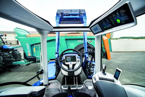 Pour ajouter à l’aspect inédit de ce tracteur, le bureau d’études a opté pour un design qui tranche. La carrosserie arrondie enveloppe le réservoir. La cabine vitrée sur 360° toit compris, reçoit des caméras remplaçant les rétroviseurs pour donner une vue complète sur l’environnement. En outre, l’affichage se fait directement sur un écran au milieu du volant.