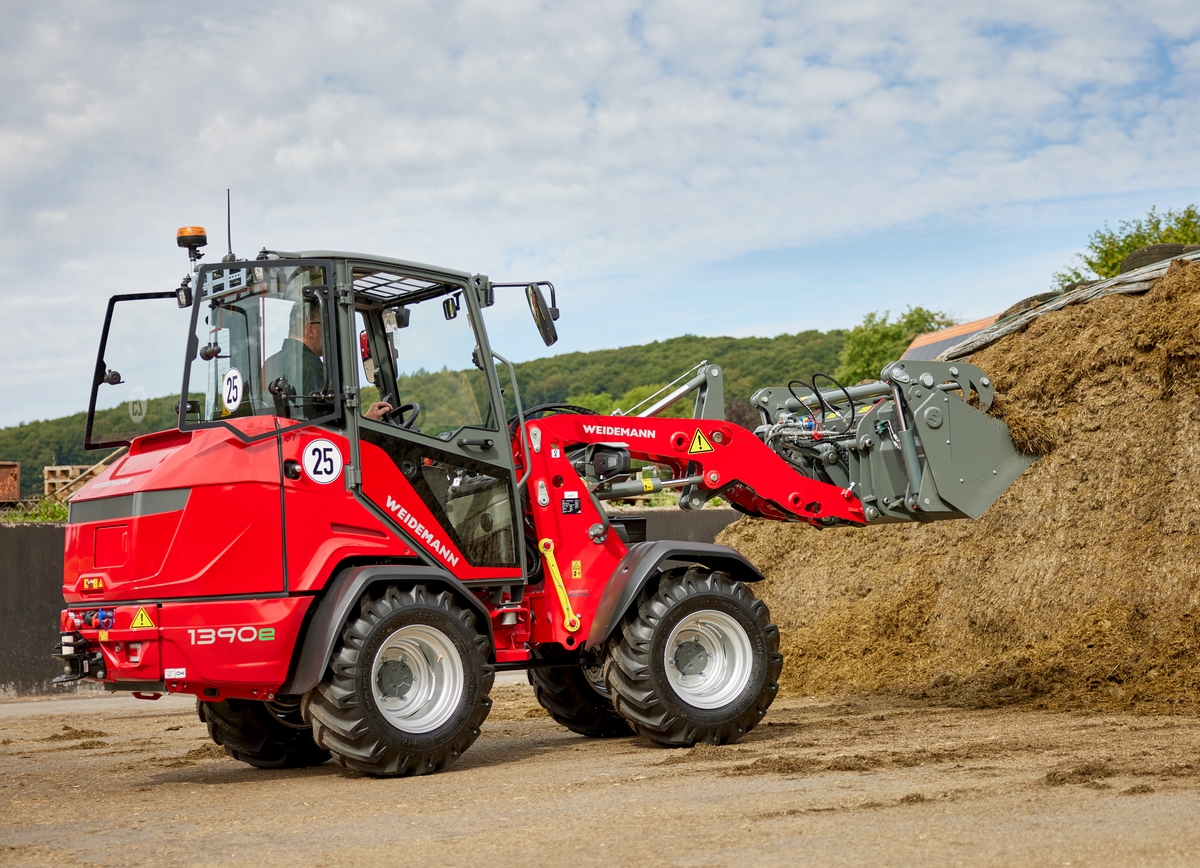 La chargeuse électrique Weidemann 1390e affiche une charge de basculement de 1,67 à 2,28 t selon la configuration. Cet engin présenté à l’Agritechnica dispose d’une puissance cumulée des deux moteurs (avancement et hydraulique) de 74 ch. Le constructeur annonce une autonomie de 5,3 h pour la batterie de 96 V, dans sa version optionnelle de 28 kWh.