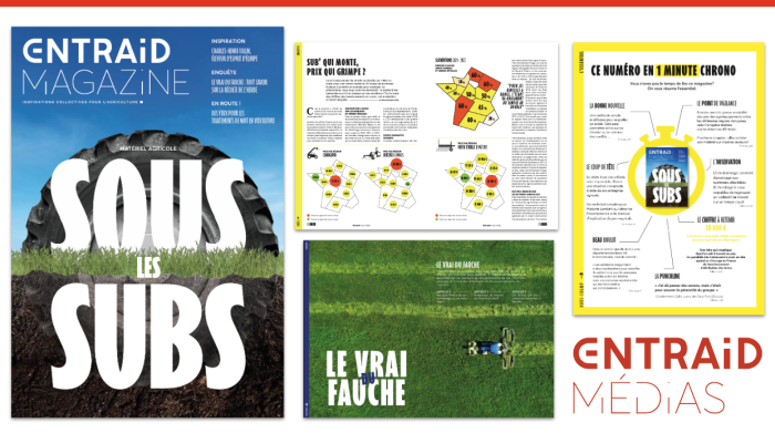 La marque média Entraid bénéficie aujourd’hui d’une signature associée qui revendique son ambition d’inspirer les agriculteurs français par la mise en avant de projets collectifs. Nos abonnés nous le disent, « les contenus sont une source d’inspiration ». Le média l’intègre aujourd’hui comme un élément clé de sa ligne éditoriale. Associée au mot inspiration, les contenus de cette nouvelle formule se doivent aussi de donner de l’ouverture aux professionnels agricoles, d’être pratiques et utiles et de leur donner une autonomie décisionnelle.