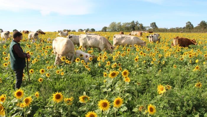 Cédric est d’ailleurs devenu le président de l’Apad très récemment. « C’est un autre avantage de mon système, se félicite l’éleveur. Il dégage du temps pour du repos ou des activités hors de l’exploitation. » Et puis il y a le plaisir. Sous le soleil d’octobre, devant son troupeau qui broute un couvert où fleurissent tournesols et phacélies, il confesse : « Des moments comme celui-là, ce n’est que du bonheur. »