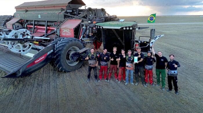 Le porte outil Nexat valide un nouveau record du monde avec son module de récolte Nexco. Cette moissonneuse batteuse embarquée dispose d’une coupe à tapis MacDon d’une largeur de 15,20 m. Le Nexat emporte un concept de battage innovant. Il dispose d’un rotor transversal qui alimente 2 unités de séparation et de nettoyage. 2 broyeurs de paille assurent une répartition homogène sur toute la largeur de travail. L’automoteur Nexat recevait médaille d’or lors d’Agritechnica 2021. Il peut embarquer toute une panoplie d’outils permettant de réaliser l’intégralité des travaux d’une culture.