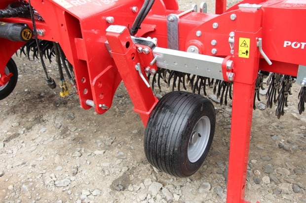 La houe rotative Rotocare de Pöttinger est construite à partir du même châssis robuste que les bineuses. Elle reçoit des étoiles Yetter, qu’on peut, en option, relever individuellement pour les interventions localisées. On en compte une tous les 8,5cm. Autres options: semis de petites graines, et réglage hydraulique de la voie des roues de jauge. Largeur: 6,60, 8 et 12,40m.