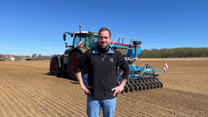 Nichés dans un vallon entre des parcelles de colza en fleur et des linéaires de haies, David Bajeux et son semoir surplombent le village de Mingoval dans le Pas-de-Calais. En ce matin déjà très ensoleillé et chaud pour la saison, il sème une parcelle de 3,80 ha. L’une des dernières des chantiers de semis de lin 2026 réalisés avec les outils de la cuma et en entraide. « Nous avons semé la plupart du lin de la cuma dans le froid et l’humidité, la semaine dernière, relève t-il. Mais depuis quelques jours, le soleil est de retour et les conditions de travail sont extra. » La preuve dans ce champ plutôt argileux où la terre ne colle quasiment plus.