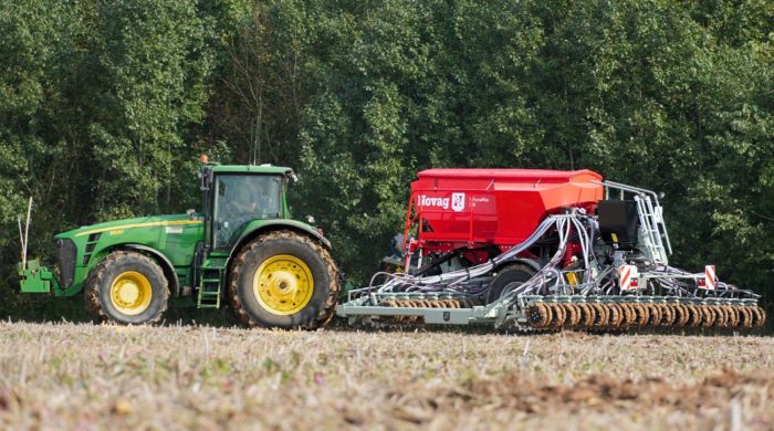 Le semoir direct Novag T-ForcePlus 750 est disponible dans deux configurations. 7,20 m avec 36 rangs pour un écartement entre rangs de 20 cm ou 30 rangs pour un écartement de 24 cm. 7,50 m avec 30 rangs pour un écartement de 25 cm. Le T-ForcePlus 750 reste compact au transport avec 3 m de large et dispose d’une homologation pour circuler jusqu’à 40 km/h. La puissance requise est d’environ 300 ch.