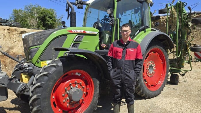 Jeune agriculteur installé en cuma, Simon Le Rolland témoigne. « Je me suis installé le 1er janvier 2024, à 24 ans, en reprenant la ferme familiale après mon père. Aujourd’hui, je cultive 30 ha de maïs et 45 ha d’herbe, dont beaucoup de prairies difficiles à exploiter. J’ai commencé à robotiser des travaux comme le raclage, en prévision du départ de ma mère dans un an ».