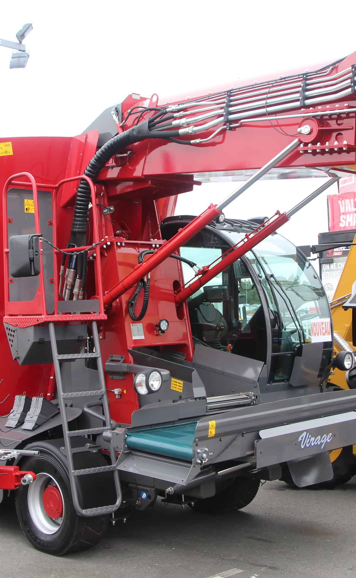 Signalons aussi la Virage, avec son tapis de distribution placé devant la cabine. Sur ses mélangeuses, le constructeur met en avant l’entrainement hydraulique des vis, entre 0 et 42 tr/min. Un gage selon lui d’économie de carburant. Le moteur, Volvo ou John Deere selon le cas, prend place tout à l’arrière. L’électronique embarquée bénéficie de la télémétrie pour un service en direct. A voir ou revoir de près au prochain Space, après une présentation au Salon de l’Herbe.
