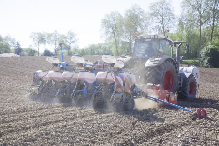 Les semis font aussi partie des périodes tendues en termes de temps de travail. Ici à la cuma de Cauneille les Trois sols, dans les Landes. (©Frédéric Maligne)