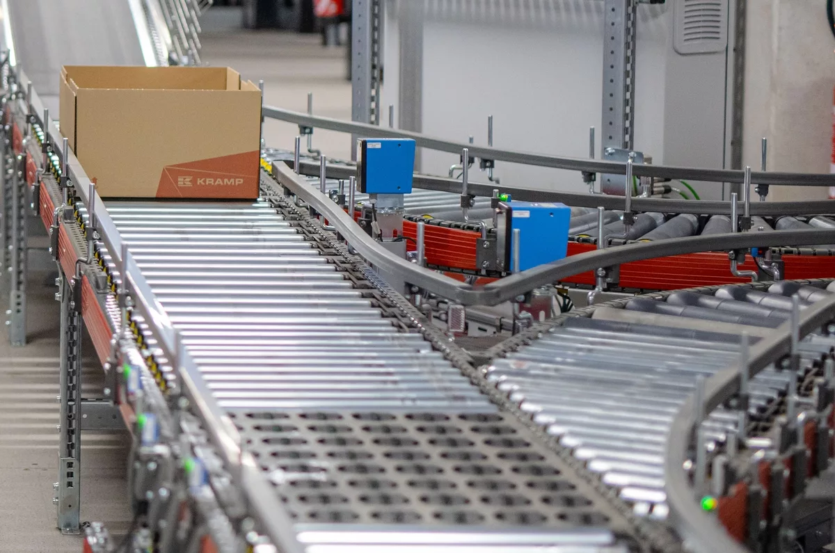 La société Kramp France a vu son chiffre d’affaires passer de 24 millions € en 2009 à 153 millions € en 2022. Le nombre de pièces de rechange et de fournitures destinées à l’agricole (70% du CA), à la motoculture et au TP augmente en flèche. Et tout cela passe par Poitiers, où le groupe néerlandais a installé sa filiale française. Depuis la création du site, il a fallu pousser les murs et rajouter des niveaux plusieurs fois. L’ensemble compte aujourd’hui six travées de 6000 m2. D’autre part, il faut désormais pas moins de 1800 m de convoyeur pour assurer la circulation des colis depuis les palettes et les étagères jusqu’aux point de chargement des camions.
