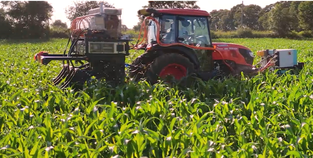 Ainsi, Rootwave annonce de prochaines démonstrations de son appareil tracté eWeeder. Le courant électrique à 18kHz utilisé est annoncé comme moins dangereux pour les opérateurs, mais aussi pour la faune sauvage. L’appareil de 1,2 t peut circuler entre les rangs distants de 1,80 à 4 m. Il possède deux bras hydrauliques lui permettant de désherber le long des plants sur une bande de 30 à 50 cm. Rootwave préconise d’autre part un tracteur de 75 ch pour ce travail.