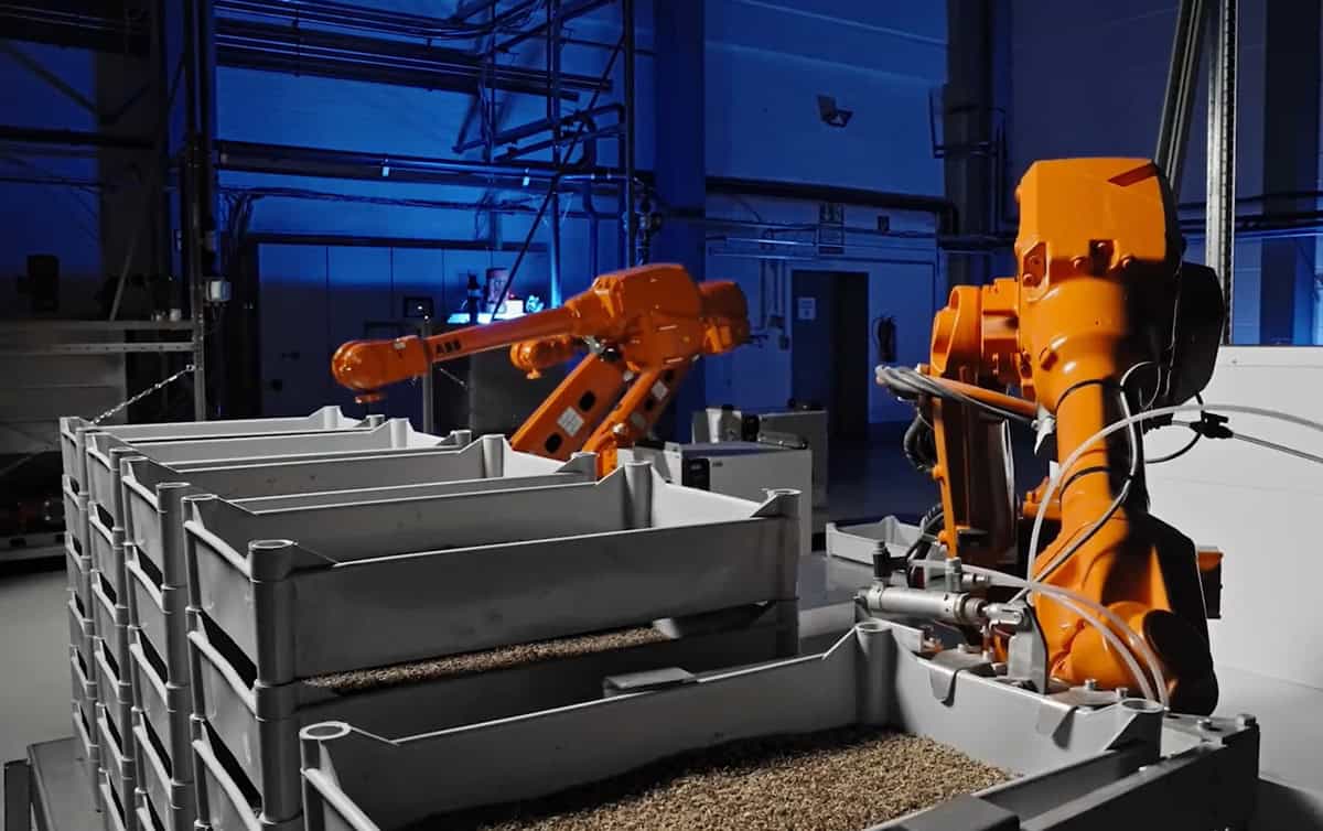 Les larves ainsi produites entrent aujourd’hui majoritairement dans la composition d’aliments pour animaux domestiques. Nos interlocuteurs signalent aussi un début d’utilisation en pisciculture, mais le prix de revient semble encore élevé pour concurrencer le soja auprès des monogastriques. On imagine aisément que l’élevage d’insecte pour ces usages sera une activité à forts investissements, avec beaucoup d’automatisation, et très intégrée. Ainsi, un exposant cite le cas d’un élevage qui consomme 100t d’aliment par jour. Livin Farms parle carrément d’ « usines à insectes« .