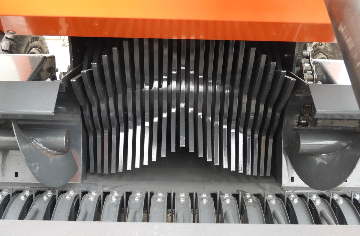 Cette machine avec canal dans l’axe du pick-up ramasse sur 2 m de large. Un ameneur rotatif pousse le fourrage vers le canal de 36 x 46 cm. Deux ou trois ficelles assurent le liage. Le constructeur annonce un débit de 250 à 350 petites bottes à l’heure, pour un besoin de puissance de 50 ch. La presse Hammer de Paksan est par exemple vendue en Angleterre chez Bale Baron, qui l’a exposée au récent salon Lamma Show.